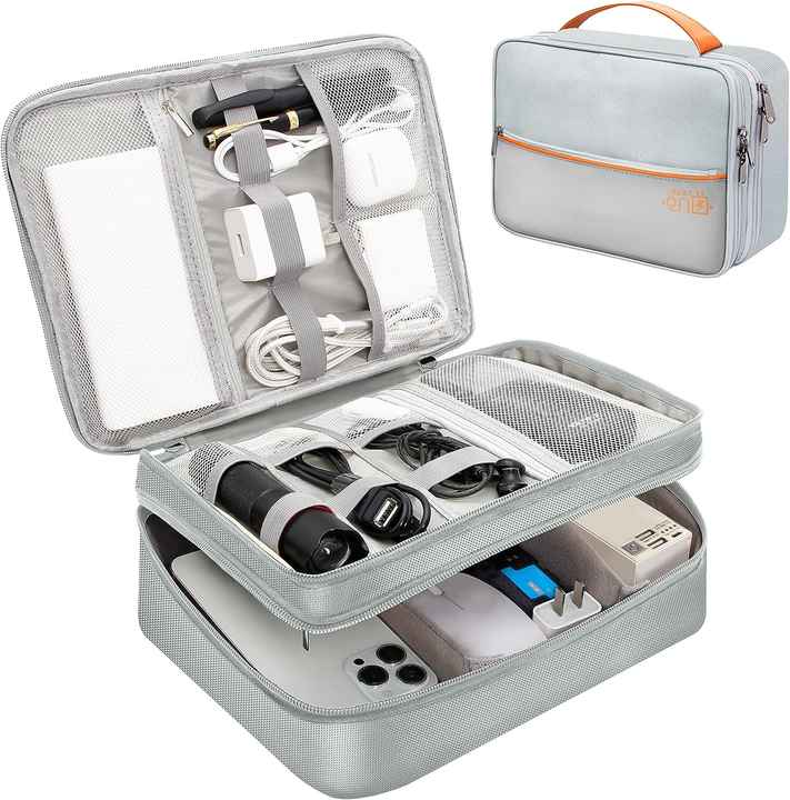 Free Sample All-in-One Portable Waterproof Electronic Accessories Organizer Canvas Carry Pouch Double Layers Zipper for Travel