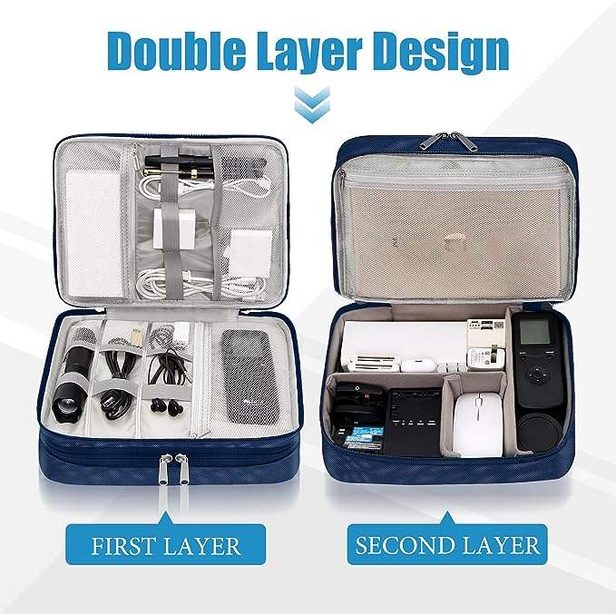 Free Sample All-in-One Portable Waterproof Electronic Accessories Organizer Canvas Carry Pouch Double Layers Zipper for Travel