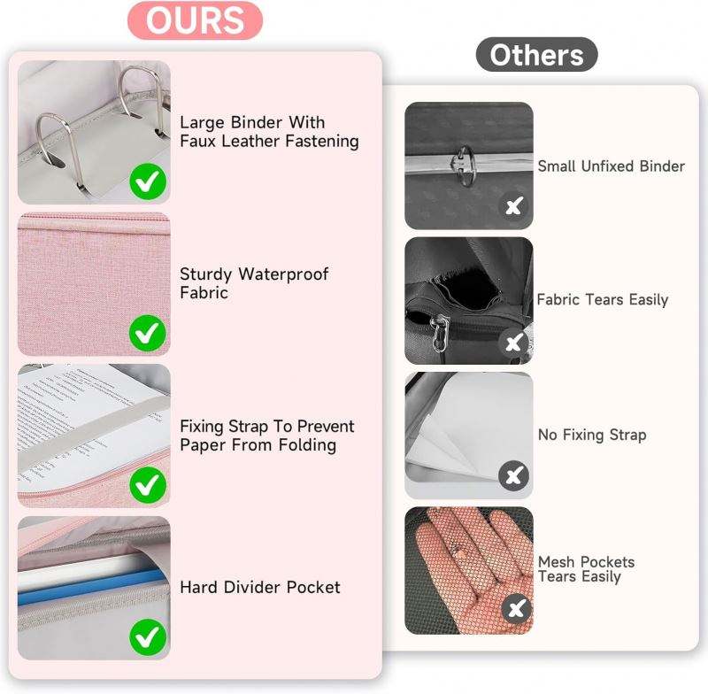 Free Sample BSCI Multiple Pockets and Large Capacity Universal Zipper Binder Holds up to 14 Inch Laptop/Tablet Zipper Binder