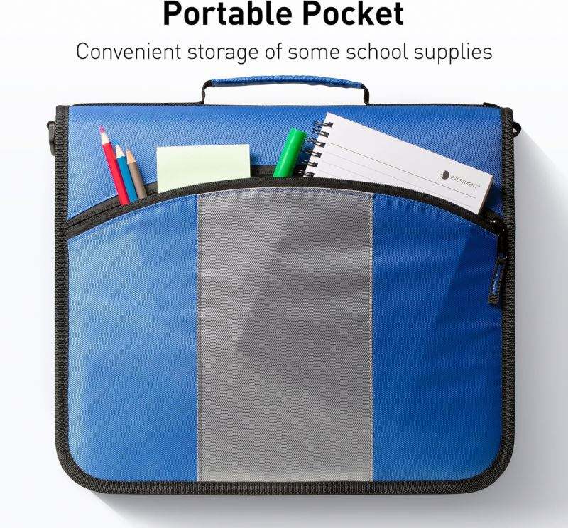 Free Sample BSCI Waterproof 3-Ring Zipper Binder with Handle Includes Multiple Pockets, 600 Sheets Capacity for Business