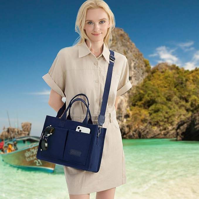 Free Sample Blue Color Custom Portable Large Waterproof Tote Bag Fashion Style Tote Bag For Office Ladies