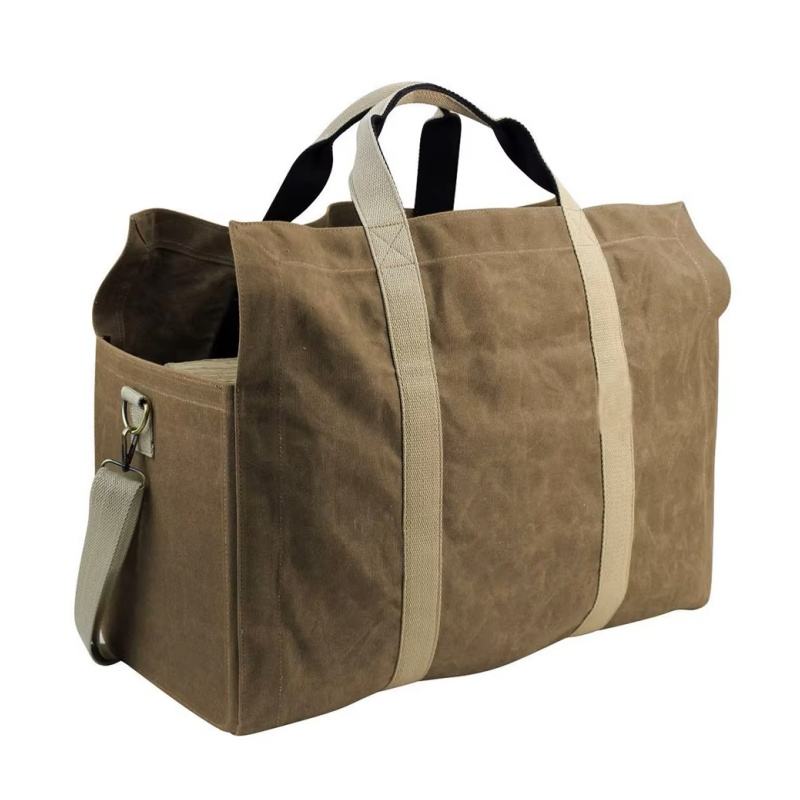 Free Sample Canvas Fire Place Fireplace Carrier Sturdy Wood Carrying Bag for Camping and Garden with Straps and Handles