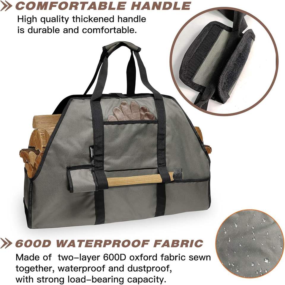 Free Sample Carrier Log for Oxford Firewood Sturdy Wood Large Camping Tote Bag with Firewood Logs for Indoor Use