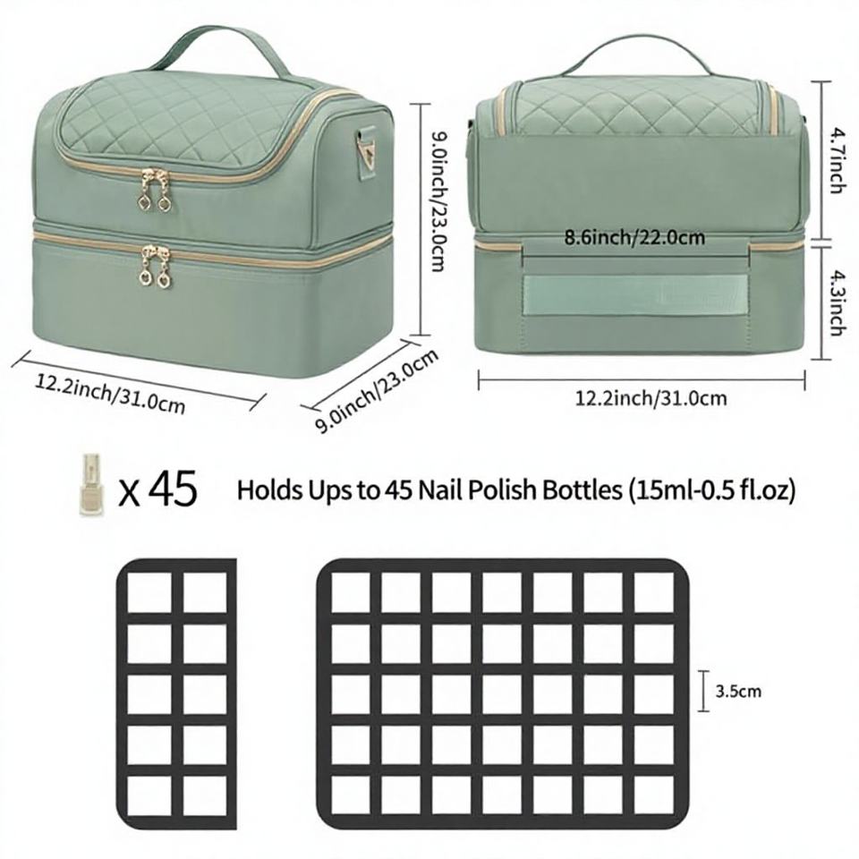 Vintage Leopard Pattern Aluminum Cosmetic Bag Soft Handle Holds 30 Bottles Double-Layer Organizer Large Capacity Zipper Closure