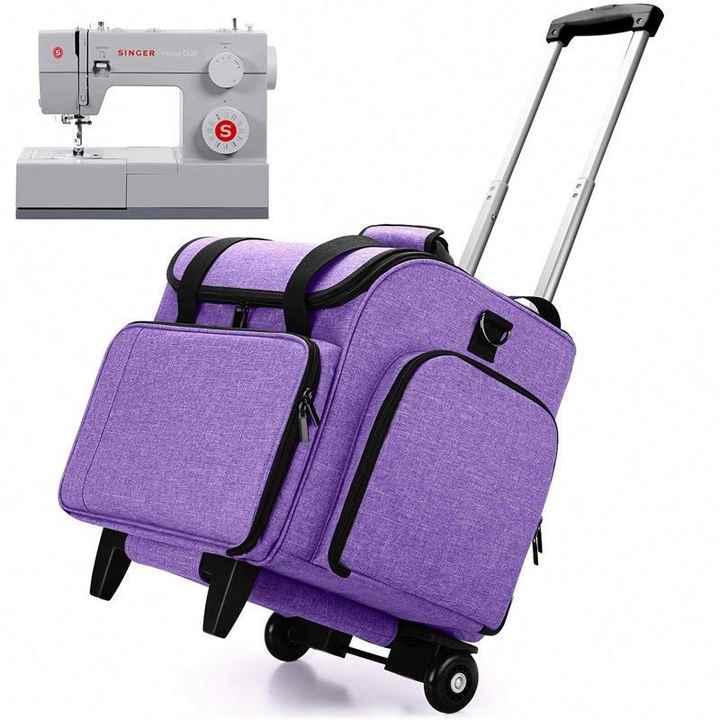 Free Sample Collapsible Deluxe Sewing Machine Storage Case Rolling Trolley Sewing Machine Tote Carrying Bag