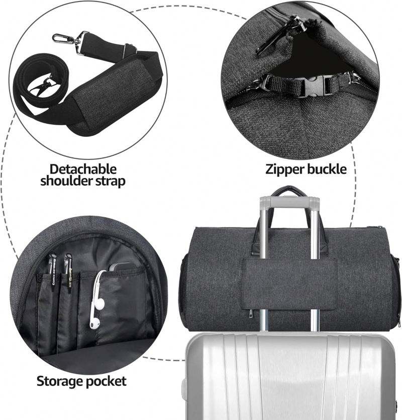 Free Sample Convertible Garment Duffle Bag with Shoes Compartment Hanging Dress Suitcase Suit Travel Garment Bag