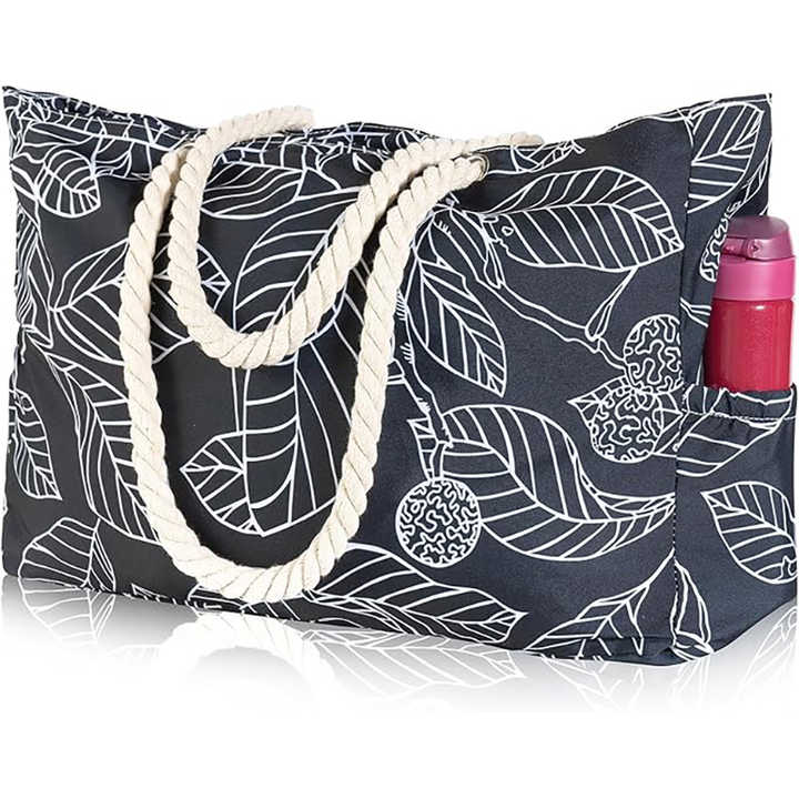 Free Sample Custom Extra Large Beach Bag Women Waterproof Sand Proof Carry on Beach Essentials Tote Bag with 5 Pockets