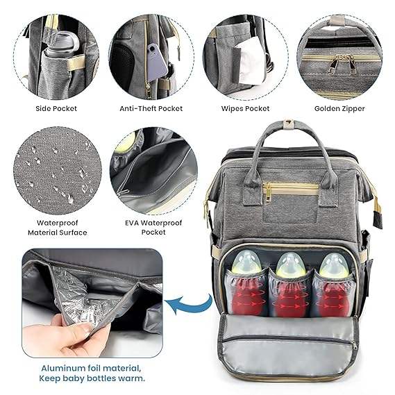 Free Sample Custom High Quality Multifunction Vegan Faux PU Leather Mummy Mommy Diaper Bag Backpack Nappy Changing Bag