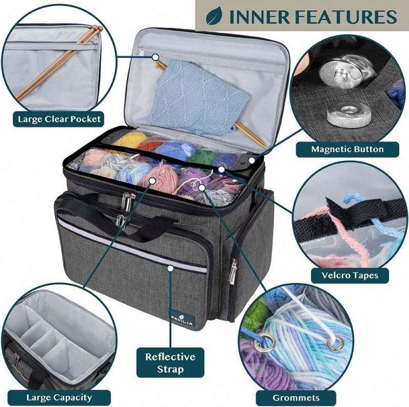 Free Sample Custom Knitting Bag with Inner Divider for Yarn and Knitting Needles Yarn Tote Organizer Crochet Organizer Bag