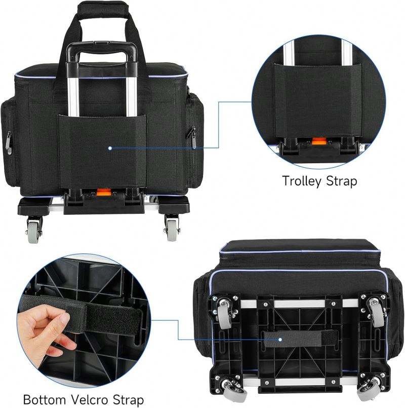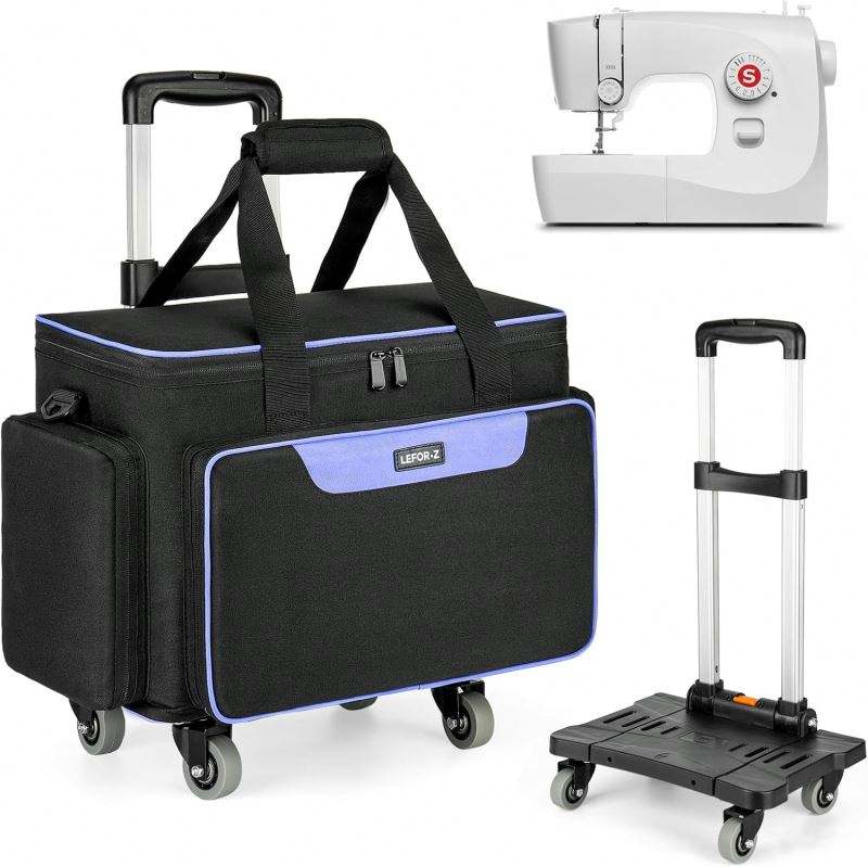 Free Sample Detachable Rolling Sewing Machine Carrying Case on Wheels, Trolley Tote Bag with Removable Bottom Wooden Board
