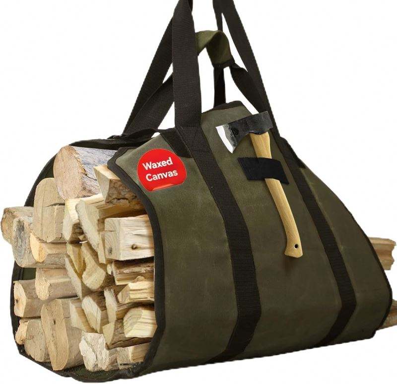 Free Sample Exceptionally Robust Firewood Holder Handle and Heavy-duty, Waxed Canvas Log Carrier Tote Bag