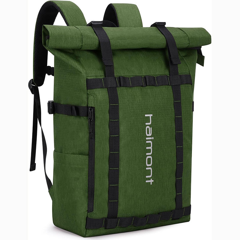 Free Sample Factory Made Black Recycled Rpet Roll Top Backpack Fashion Roll up Travel Backpack Daypack