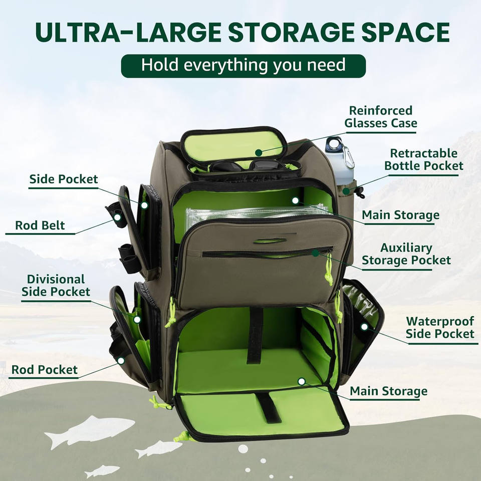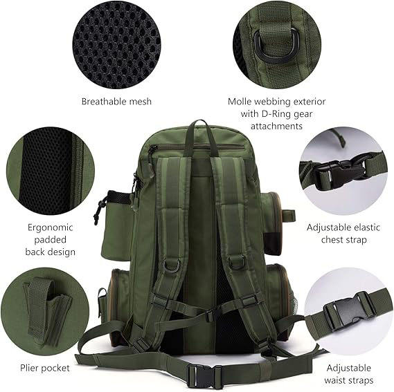Free Sample Factory Stock 50L Fishing Tackle Backpack with Removable Bait Binder , Rod Holders Storage Fishing Gear Tactical Bag