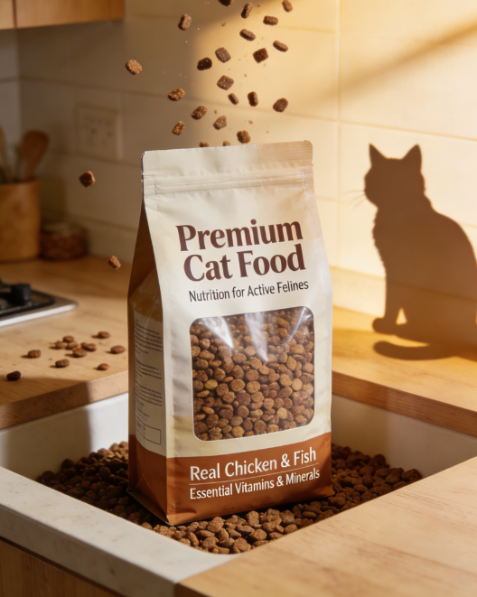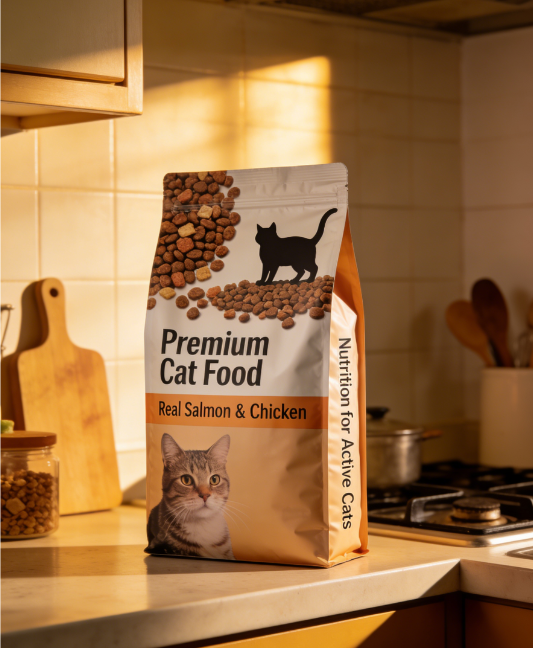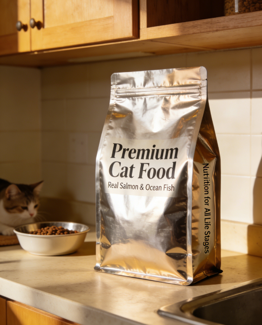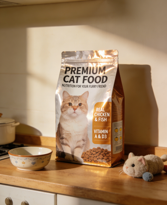 Free Sample Food Grade Custom Flag Bottom Bags Moisture Proof Resealable Packaging Suitable for Cat Food and Pet Treats