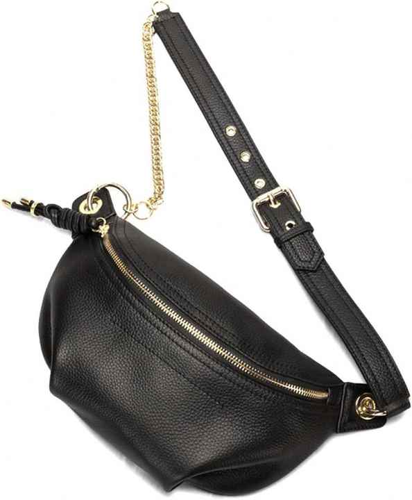 Free Sample Free Sample Genuine Leather Fanny Packs Chest Bag Phone Purse with Chain for Women Mini Belt Bag Black