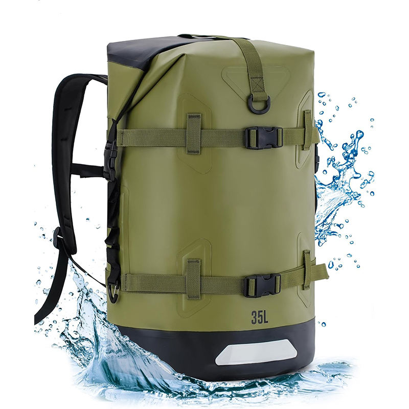 Free Sample Genuine Leather Waterproof Dry Bag 36-56L Floating Backpack Zipper Hasp Closure Durable for Kayaking Water Sports