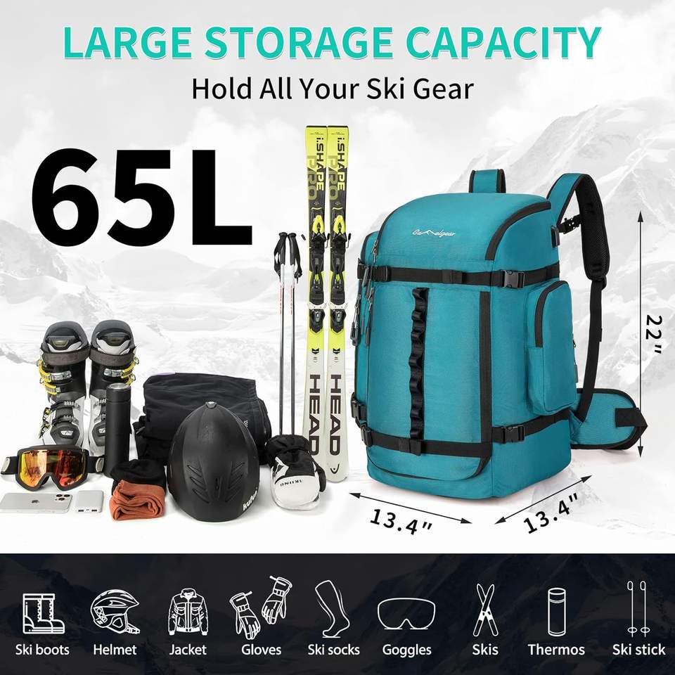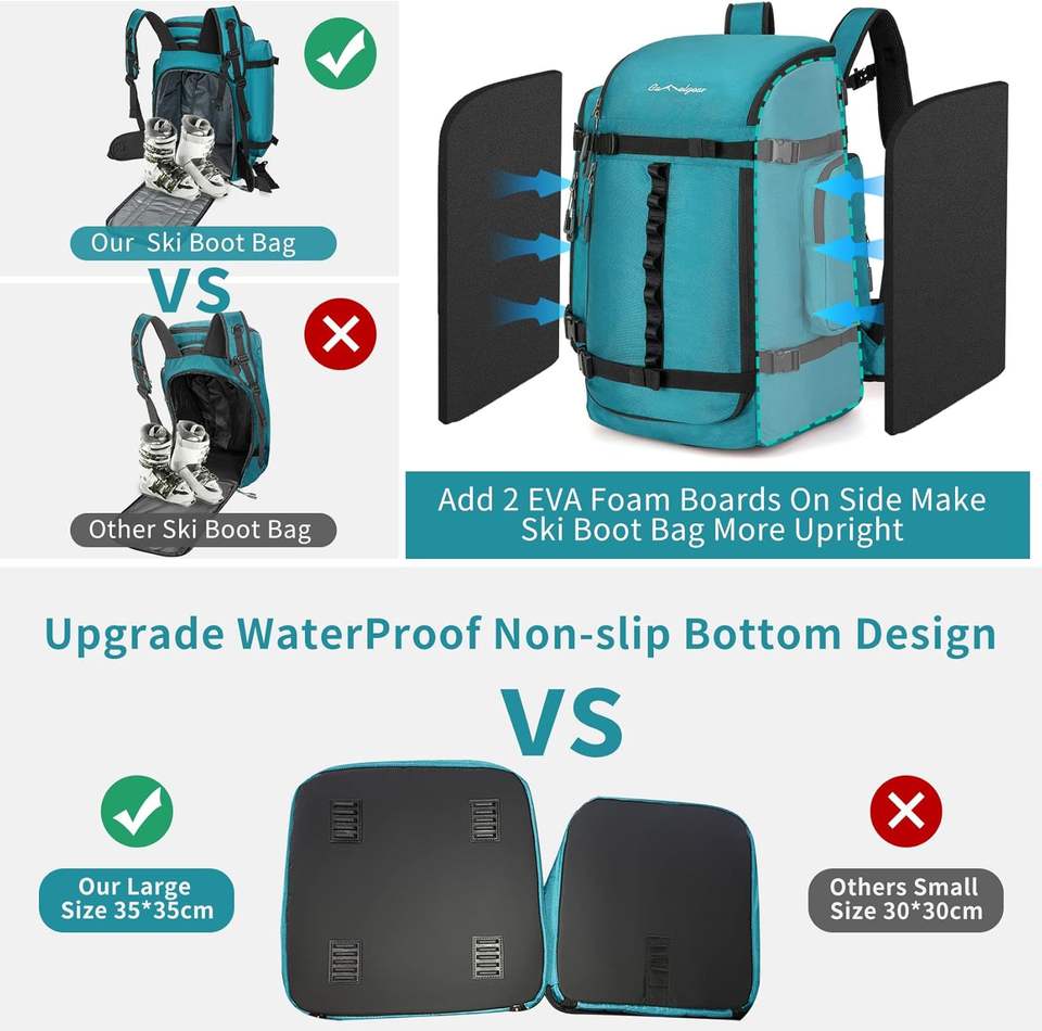 Free Sample Heavy Duty Large Capacity Ski Boot Backpack Custom Ski Boot Bag with Helmet Pocket Skiing Gear Bag