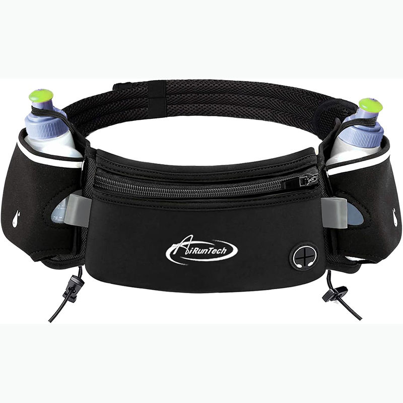 Free Sample Hydration Pack - Two 10 oz. Water Bottles with Adjustable Belt and Zippered Pockets - Reflective Details