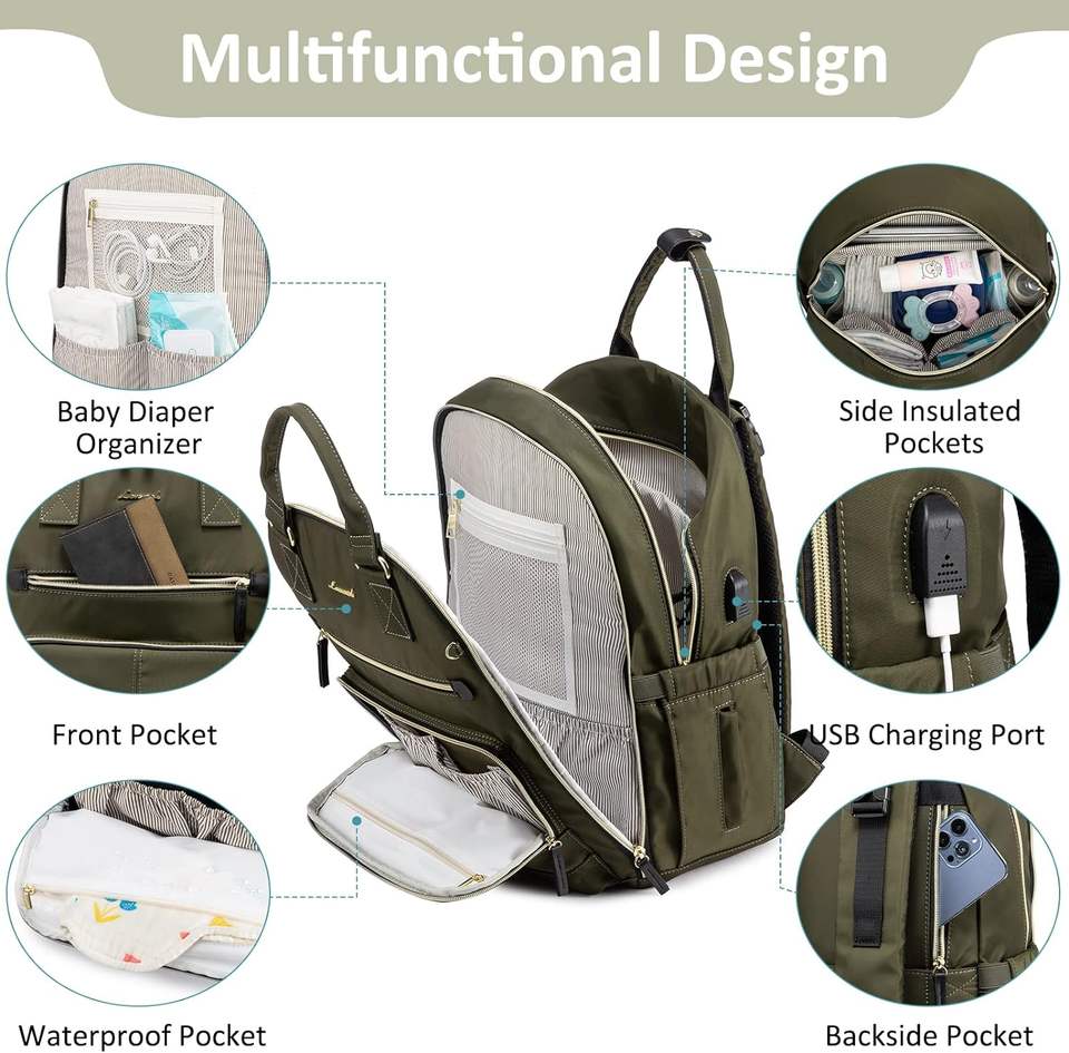 Free Sample Large Capacity Vegan PU Leather Baby Diaper Bag Backpack Multi-function Maternity Nappy Travel Bags for Mummy Mother