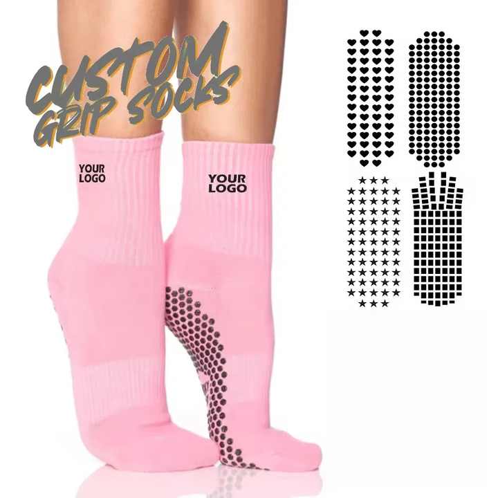 Free Sample Low MOQ Indoor Premium Crew Knitted Print Pilates Socks for Women Custom Non-slip Cotton Yoga Grip Socks