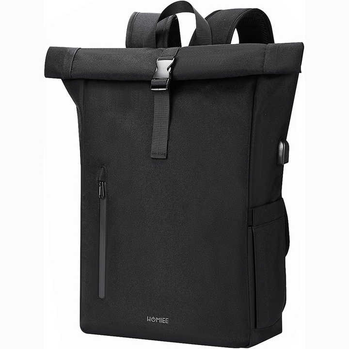 Free Sample Luxury TPU Leather Waterproof Travel Tuck Pack Rolltop Laptop Computer School Bags Roll-top Anti-theft Backpack