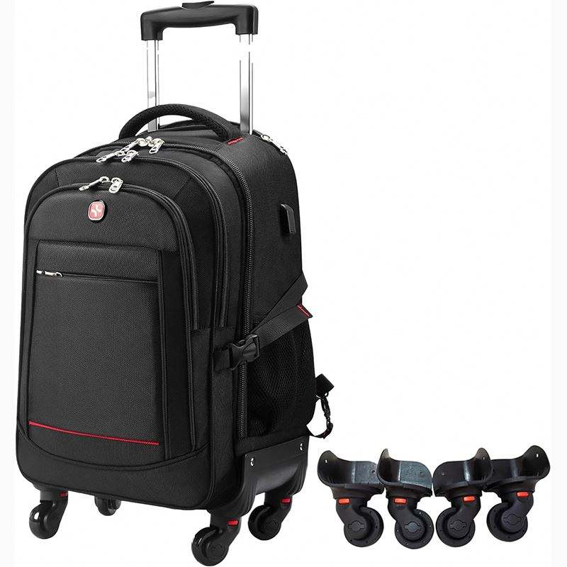 Free Sample Men Women Waterproof Rolling Trolley Black Laptop Backpack Polyester Carry on Bagpack Oem Travel Backpack