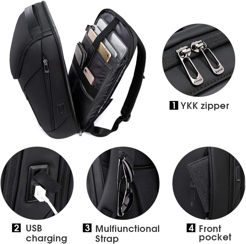 Black 15.6'' Inch Laptop Backpack with USB Device, Side Pocket, Waterproof Fabric