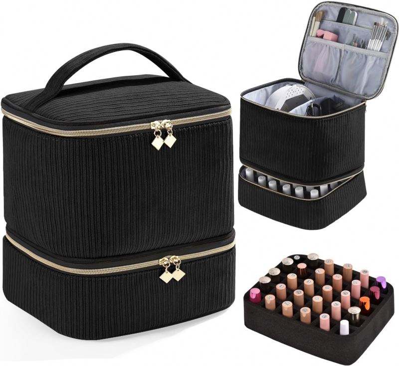 Free Sample Nail Polish Carrying Case Bag-Holds 30 Bottles, Double-Layer Nail Polish Storage and Nail Dryer Case