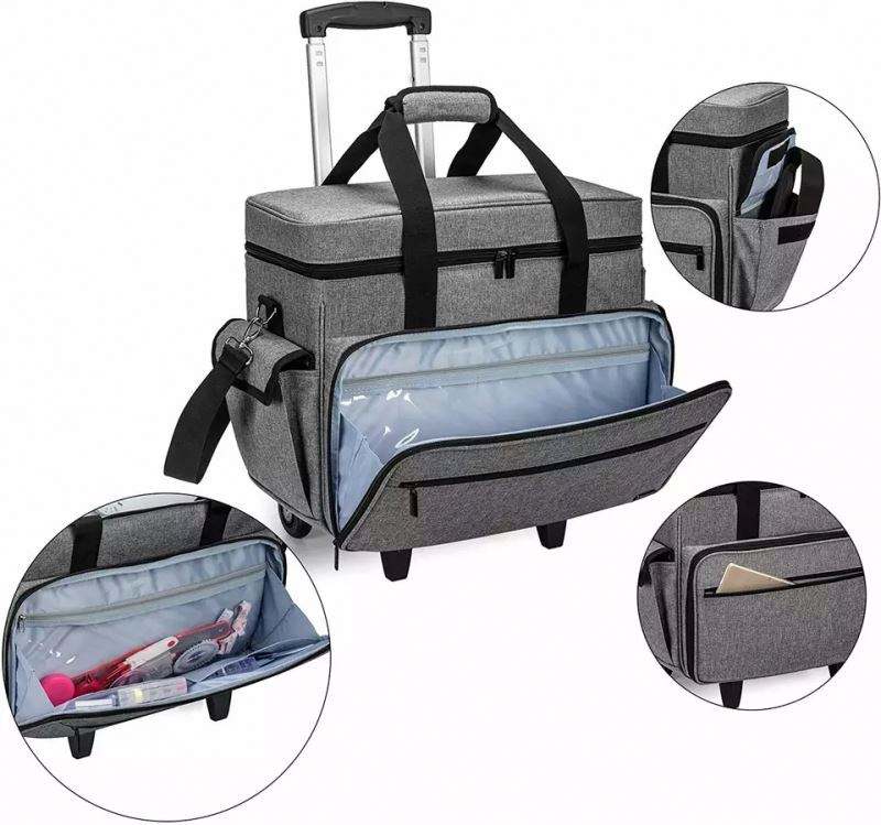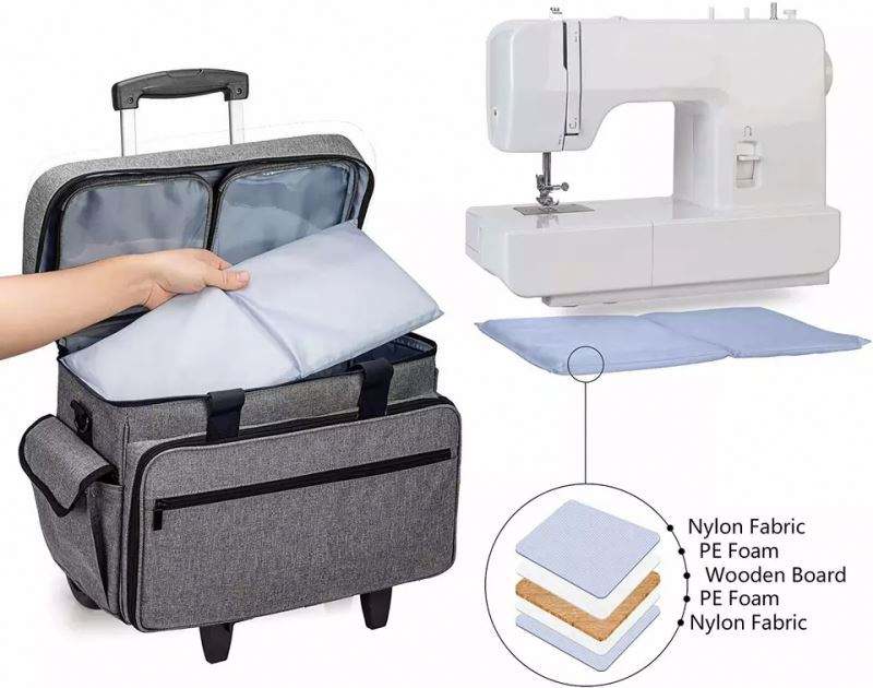 Free Sample New HEXIN HXJ0440 Polyester Sewing Machine Case Wheeled Trolley Bag