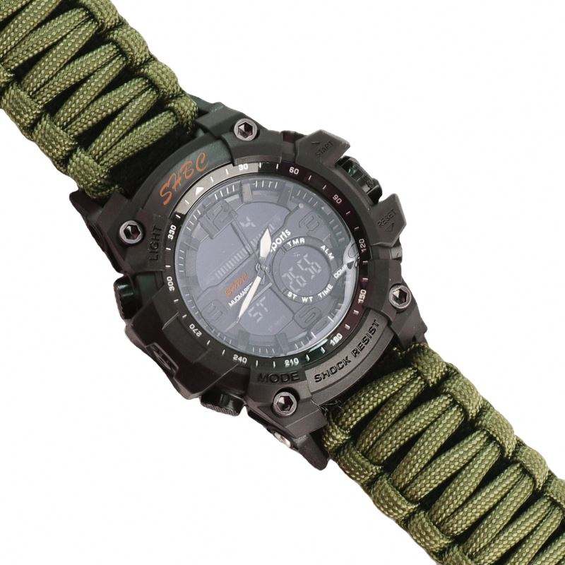 Free Sample Outdoor Mens Gift Waterproof Emergency 6-in-1 Camping Survival Paracord Watch