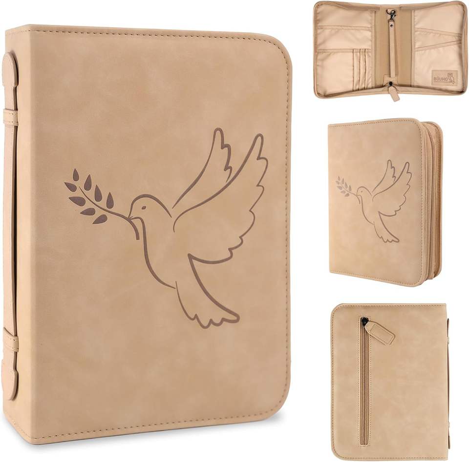 Free Sample PU Leather Waterproof Large Bible Case For Women Carrying Book Case With Handle Debossed Floral Design Bible Bags