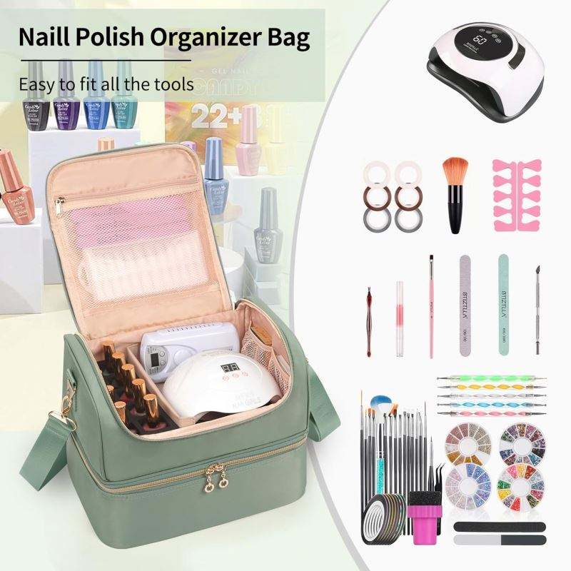 Free Sample Portable Nail Polish Organizer Bag with UV Light Case - Holds 30 Bottles and 1 UV Nail Lamp