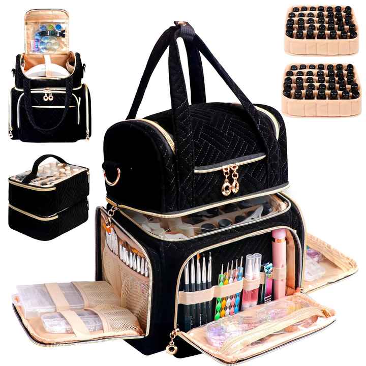 Free Sample Relavel Double Layer Pink Nail Case Lamp Storage Bag Holds 40-50 Nail Polish Bottles Portable Manicure Set Holder