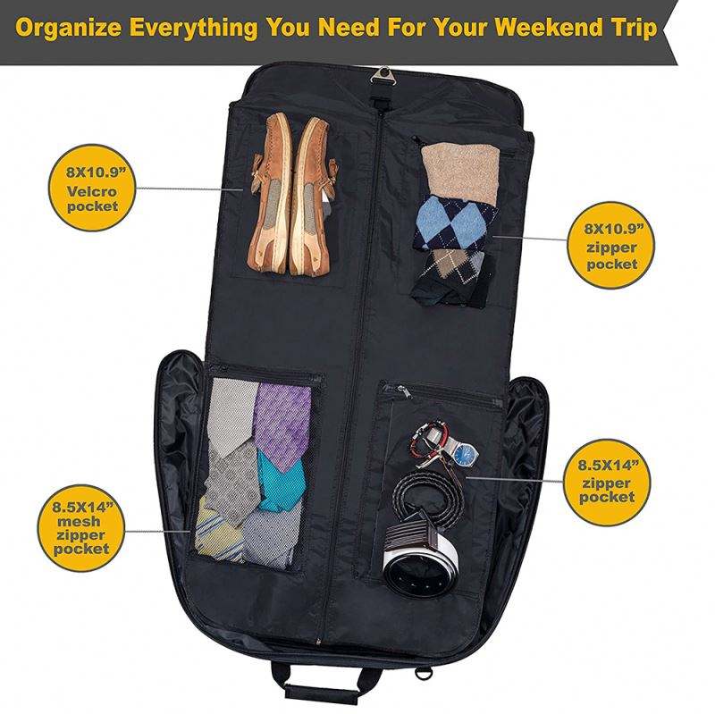 Free Sample Suit Carry on Garment Bag for Travel & Business Trips With Shoulder Strap (Black)