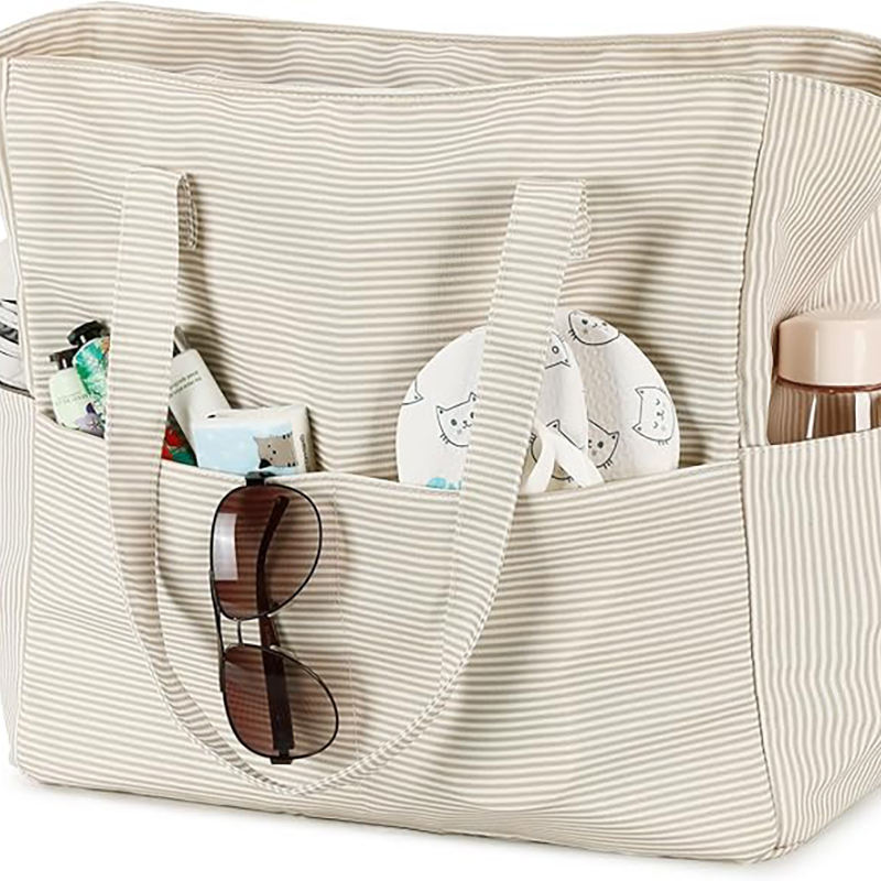 Free Sample Summer Striped Shoulder Straw Bag Large Capacity Casual Hundred Women Seaside Beach Rattan Woven Tote Bag