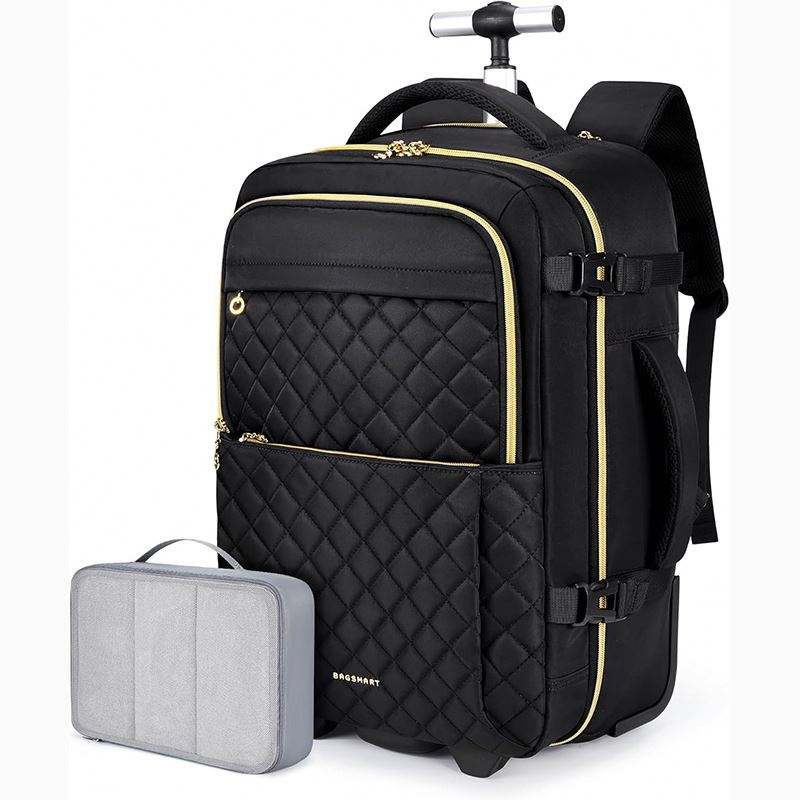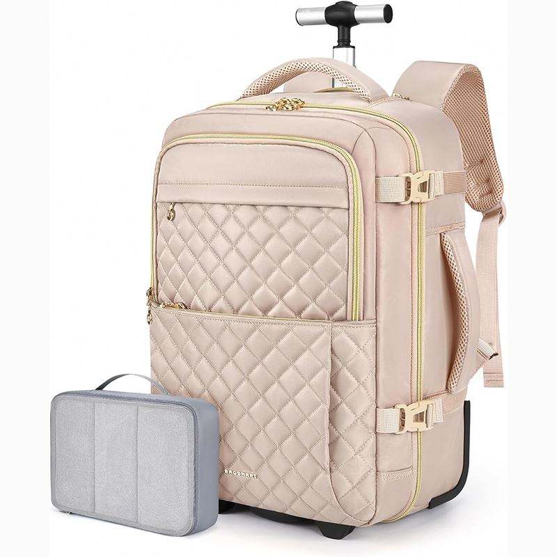 Free Sample Water-resistant Large Laptop Rolling Backpack With Telescoping Handle Fashionable Work Travel Business