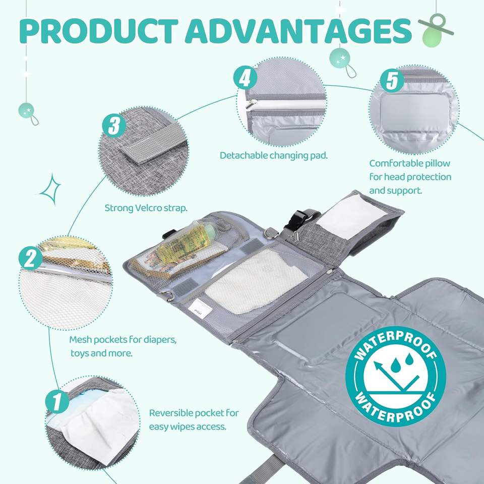 Free Sample Waterproof Foldable Baby Changing Mat Vegan Leather Travel Baby Diaper Changing Pad With Wipes Pocket