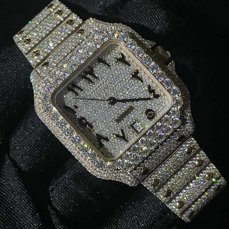 Free Shipping Automatic Quartz Watch for Men Custom Iced Out Diamond Wristwatch Square Case Fashion Style