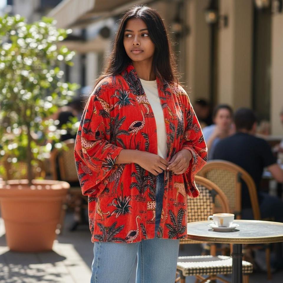 Free Shipping: Indian Velvet Handmade Robe Jackets Coat winter robe OFMD jackets Bird floral Jungle print bohemian printed