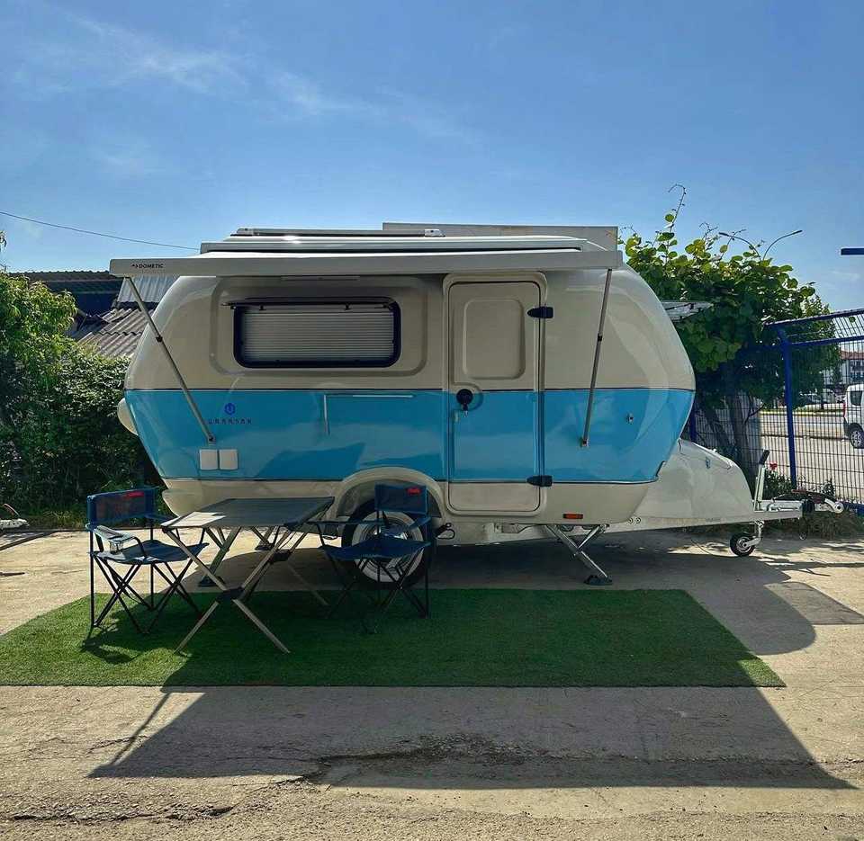 Free Shipping Mini Lightweight Modern Teardrop Camper Travel Trailer with Tent Sleeps 6