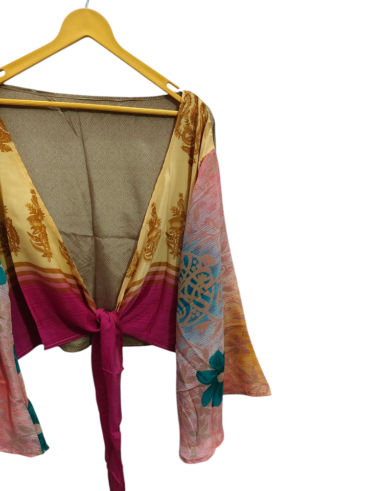 Free Size Blouse Skirt Top House Wear Short Sari Silk Tie Top Long Sleeves Gift For Her Short Robe