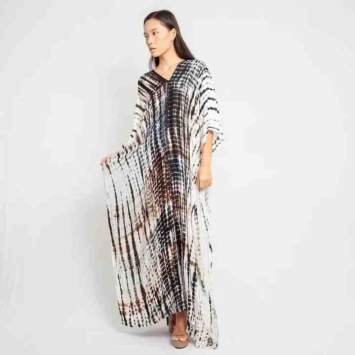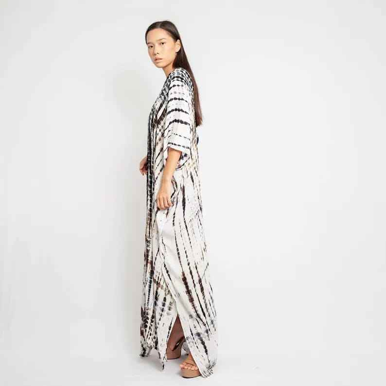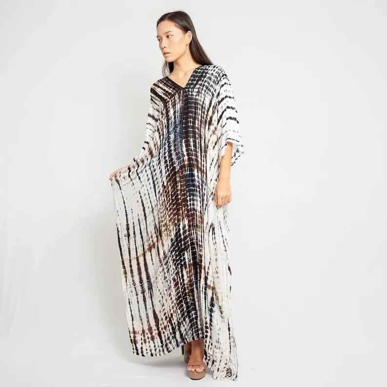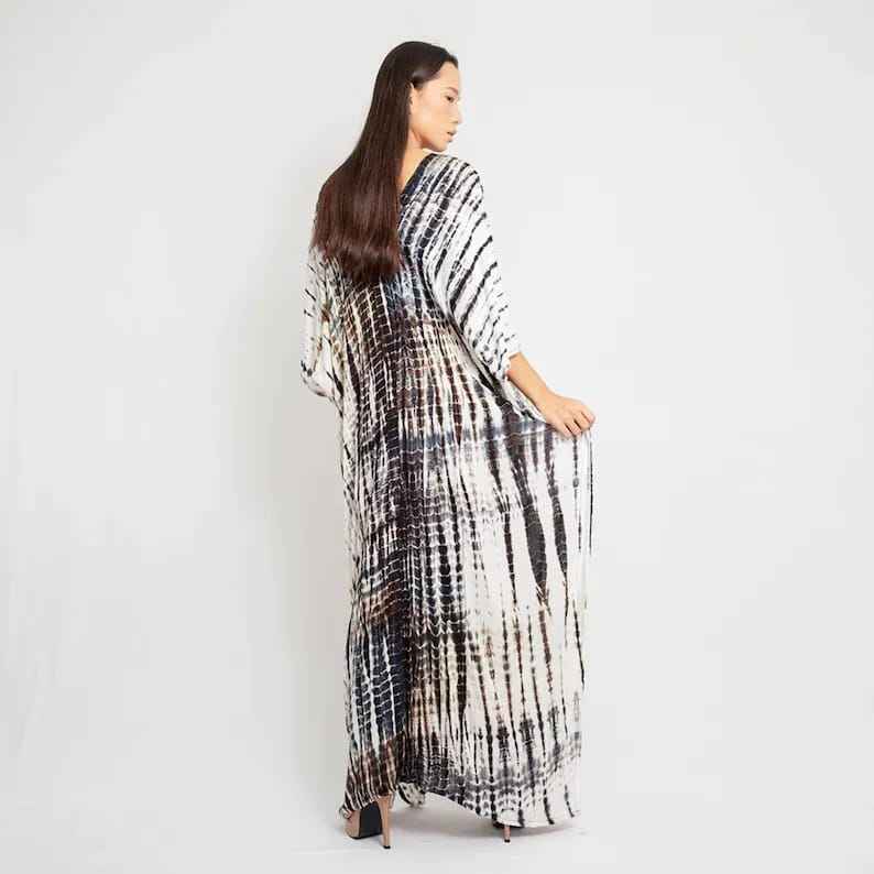 Free Size Boho Kaftan Swim Cover for Women Handmade Tie Dye Sexy Outfit Summer Vacation Beach Wear Floor-Length Sweet Style