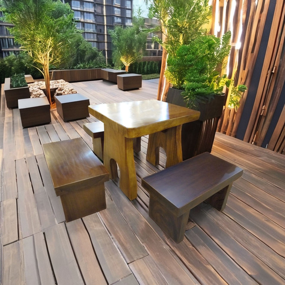 Free-Spirited Natural Walnut Wood Bench 81cm Length for Restaurant Dining Room and Outdoor Living Room