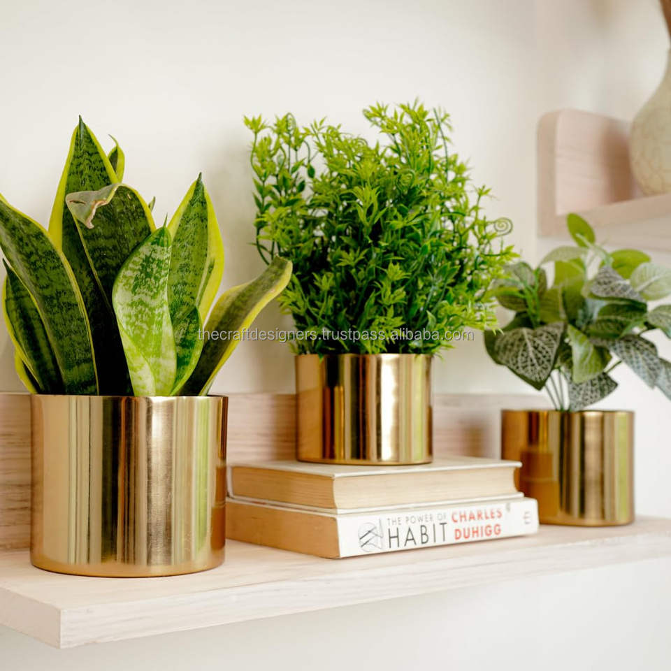 Free Standing Flower Pots Buckets Sheet Iron High Quality Gold Electroplated Metal Planters Set Tableware Easy portable Planter