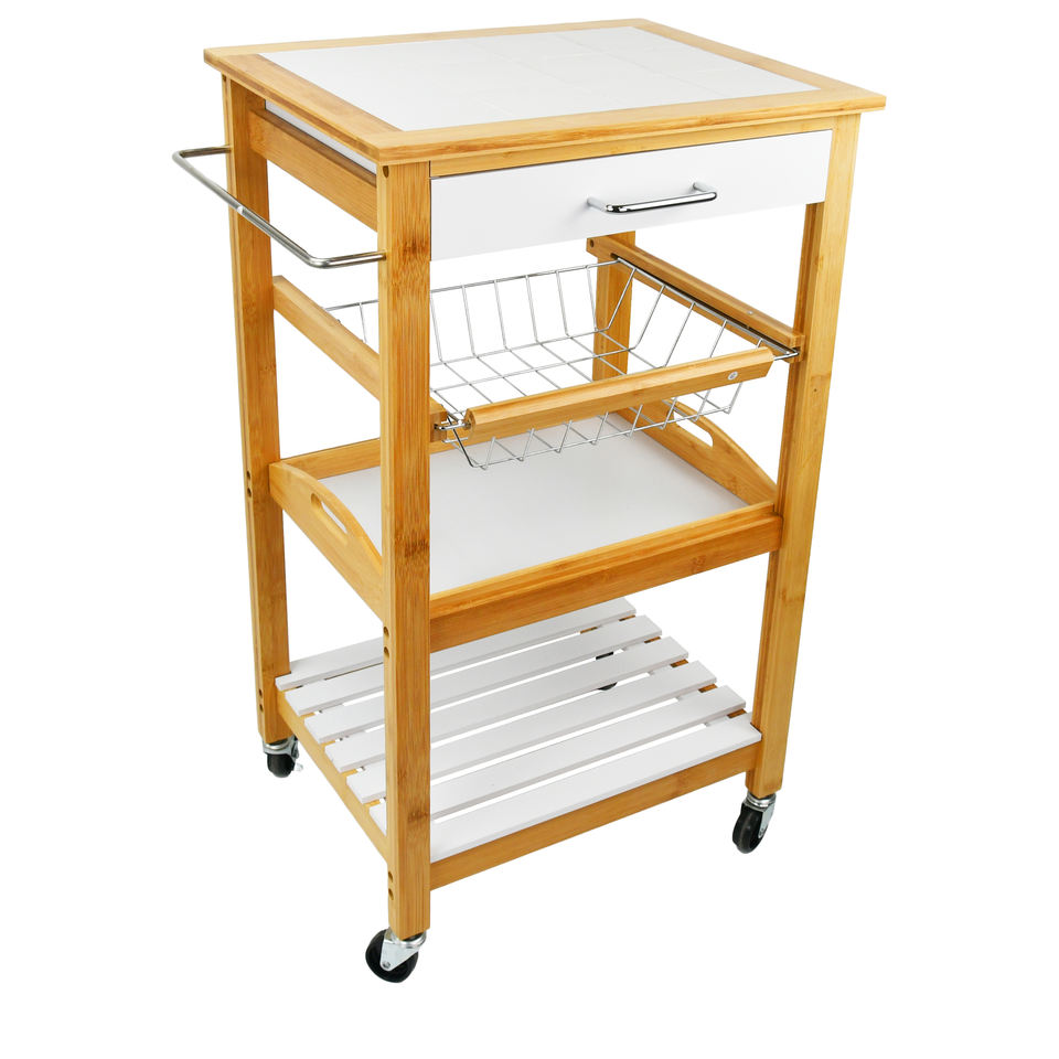Storage Serving Cabinet Bamboo Kitchen Trolley with cutting board topProduct name