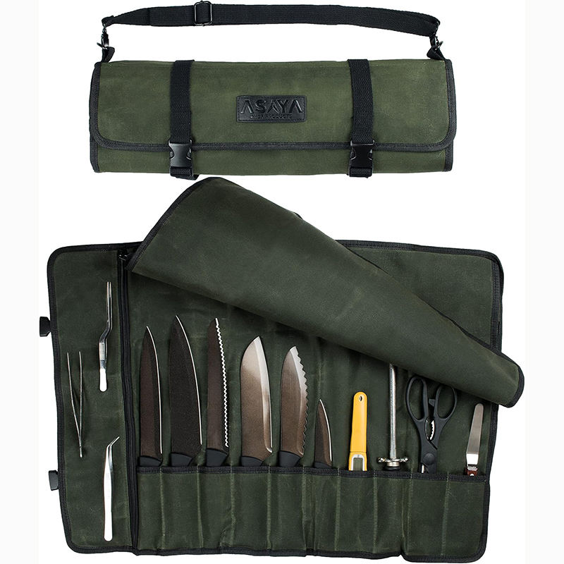Free sample Custom Vintage Waxed Canvas Leather Chef Knife Tool Roll Bag with OEM and ODM Support