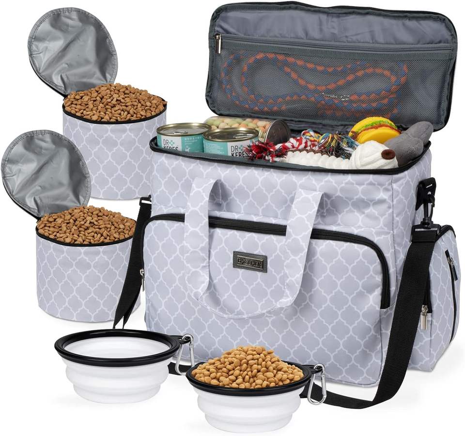 Free sample Dog Travel Bag, Travel Pet Bag Organizer, Dog Food Travel Bag with Food Container and Bowls