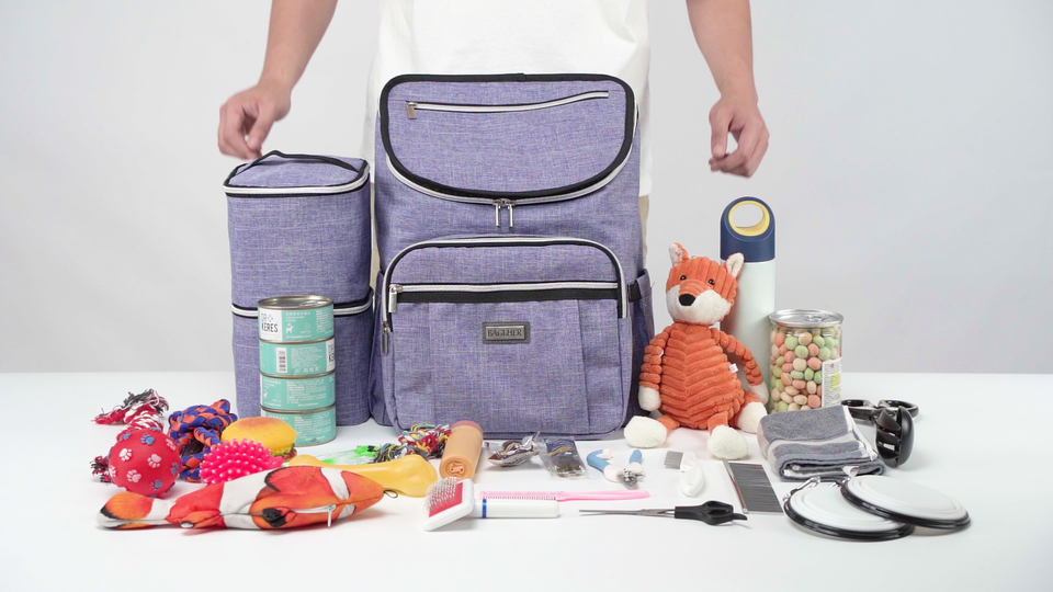 Free sample Dog Travel Bag, Travel Pet Bag Organizer, Dog Food Travel Bag with Food Container and Bowls