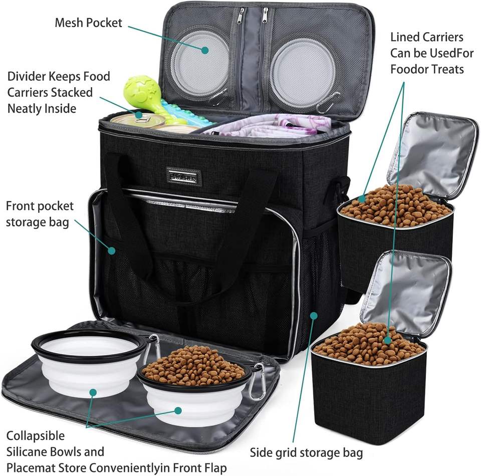 Free sample Dog Travel Bag, Travel Pet Bag Organizer, Dog Food Travel Bag with Food Container and Bowls