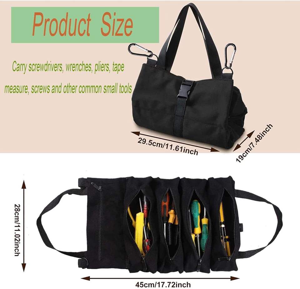 Free sample Factory Canvas Tool Roll-Up Bag Wrench Storage Carrier Car Back Seat Organizer Kit, Multi-Purpose Roll Tool Bags
